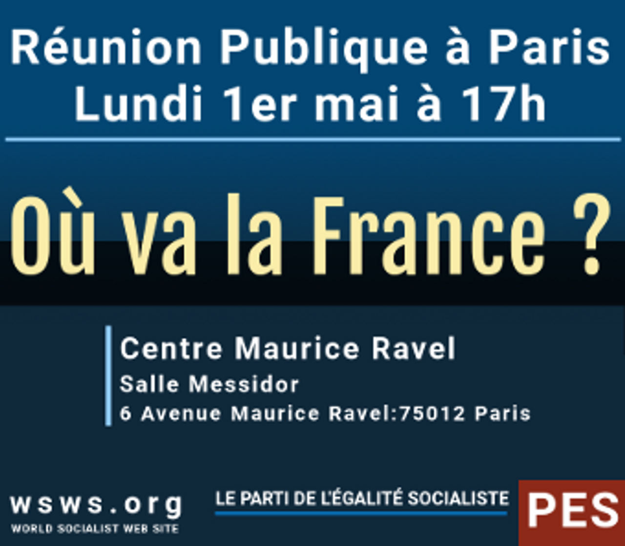 Non à la guerre et au nationalisme ! Construisons le PES! Déclaration du Parti de l'égalité socialiste sur les présidentielles françaises