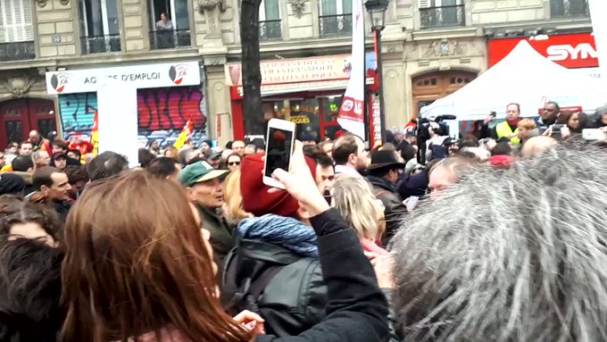 Olivier Faure et des cadres et militants PS ont quitté le cortège sous les huées des manifestants #Greve22mars "La loi Travail c'est vous!"