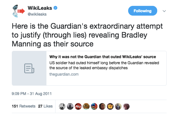 On peut observer cela dans les tentatives constantes de minimiser les efforts de Wikileaks pour défendre et organiser le soutien à Chelsea Manning et autres lanceurs d’alertes.