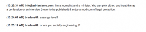 Lamo s’était présenté à Manning comme étant à la fois un journaliste et, c’est le comble, un prêtre, et a déclaré que Manning pouvait donc être doublement assuré de la confidentialité de leurs communications. Une trahison inadmissible de sa confiance.