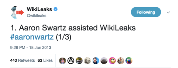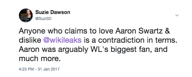 Comme Poulsen, après le décès d’Aaron Swartz, d’autres personnes qui lui ont rendu hommage ne font aucune mention de WikiLeaks.
