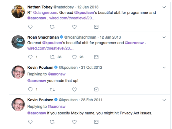 Dans ces circonstances, il faut s’émerveiller de la façon dont Poulsen est devenu un gardien autoproclamé de l’héritage d’Aaron Swartz. Surtout quand il ne reconnaît pas les faits les plus élémentaires à son sujet : qu’Aaron était un défenseur très connu de WikiLeaks jusqu’à sa mort, et un bénévole pour WikiLeaks.